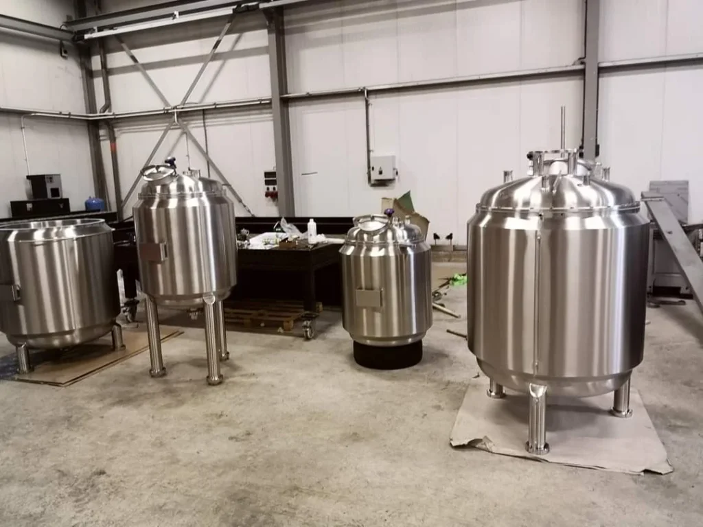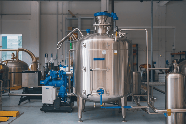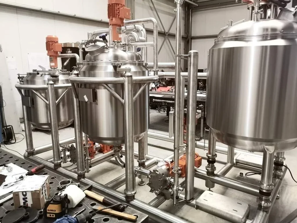 Hygiënische roestvrijstalen tanks, die een steriele en contaminatievrije productieomgeving garanderen.